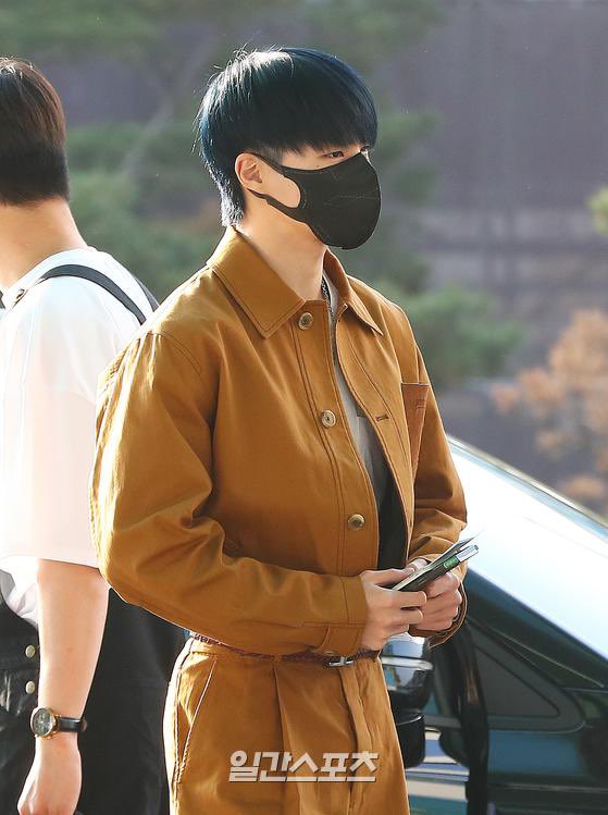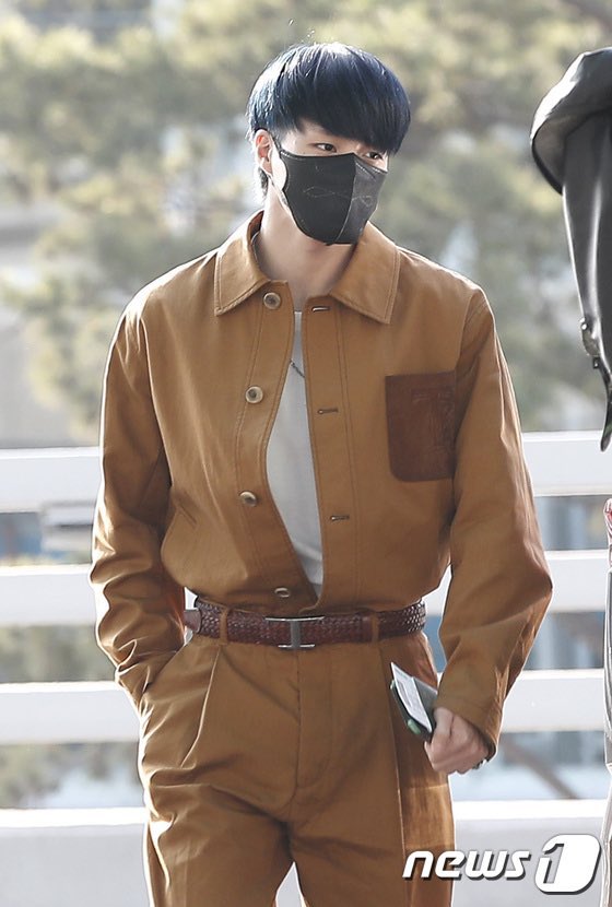 Jeno makai baju satu set warna coklat >_<. Gemes