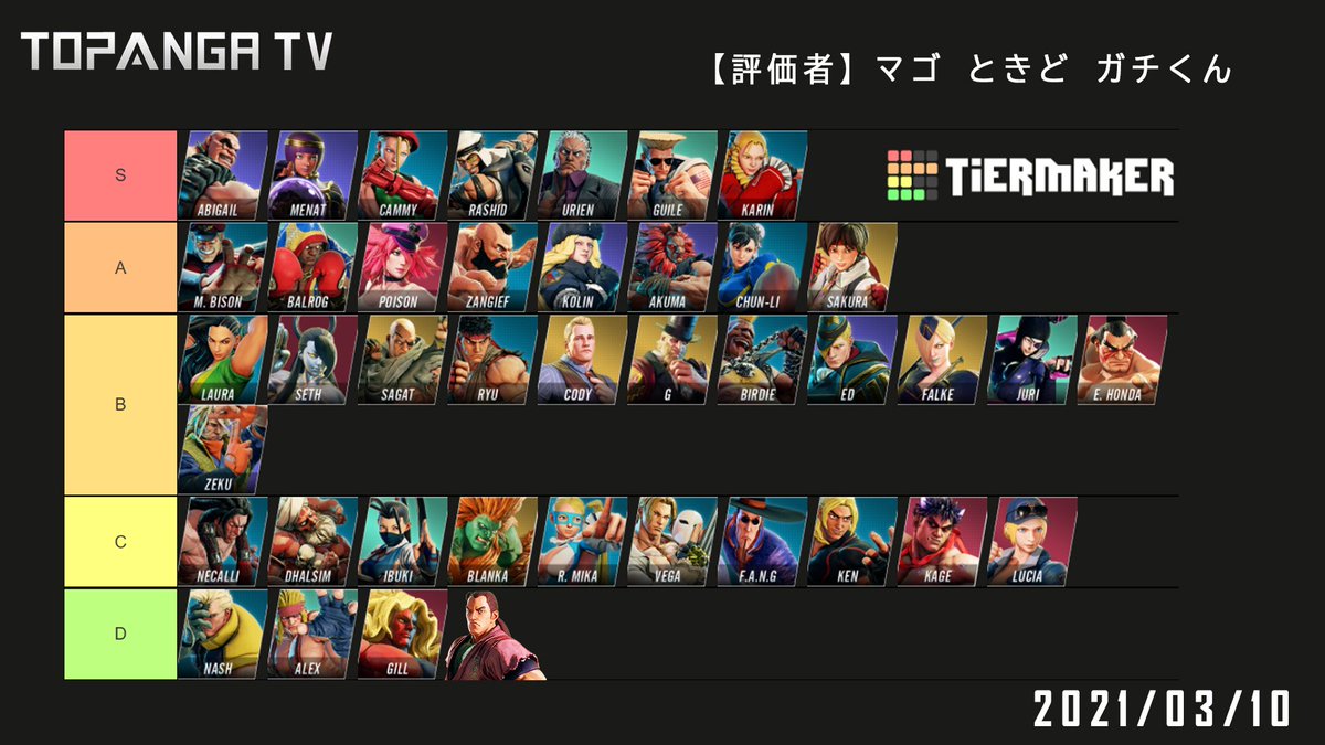 先日のTOPANGA TV内で決めた新シーズン序盤のキャラランク!かんなり丸くなったなぁ🤔 twitter.com/magotto3/statu…