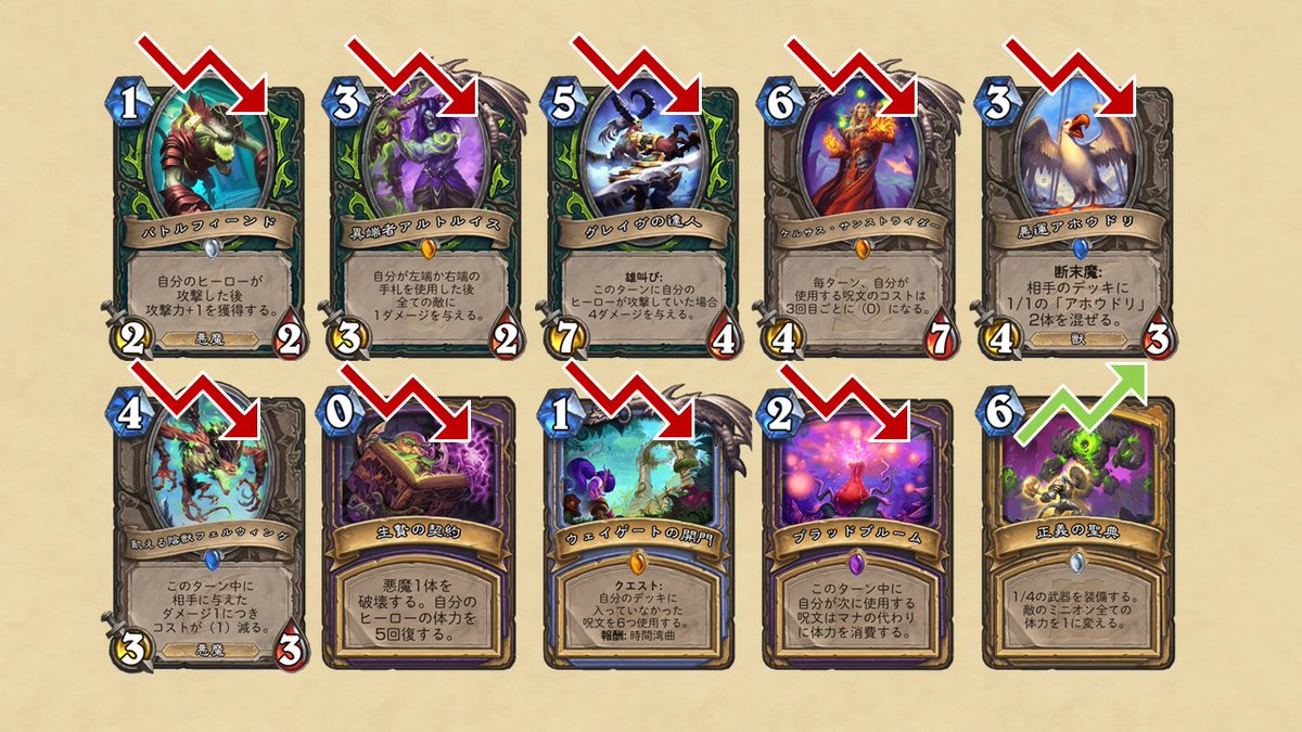 このアップデートにより、強化と弱体化を含んだ合計12枚ものカードの調整が行われます。