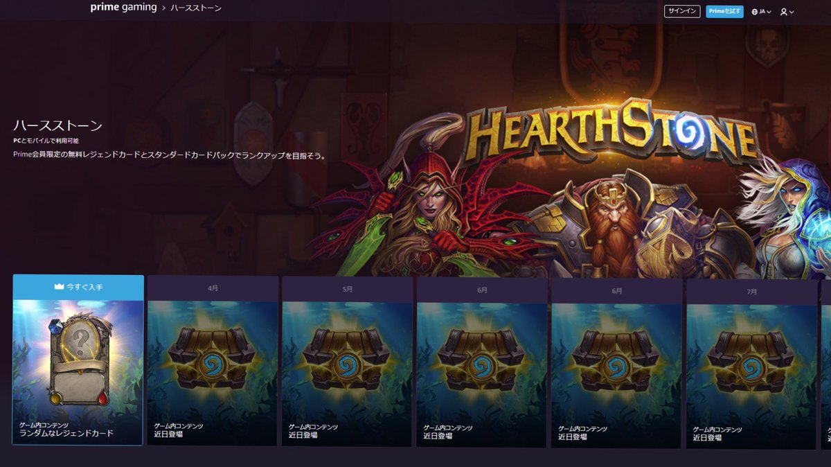 ▼Primeゲーミングにハースストーン特典が追加!