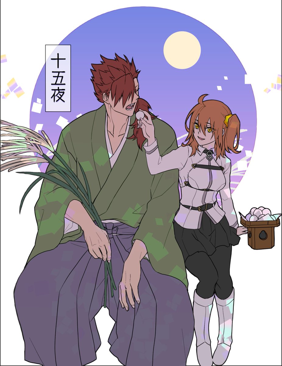 お月見森ぐだ♀ 森くんにお団子ひとつどうぞーするぐだちゃん