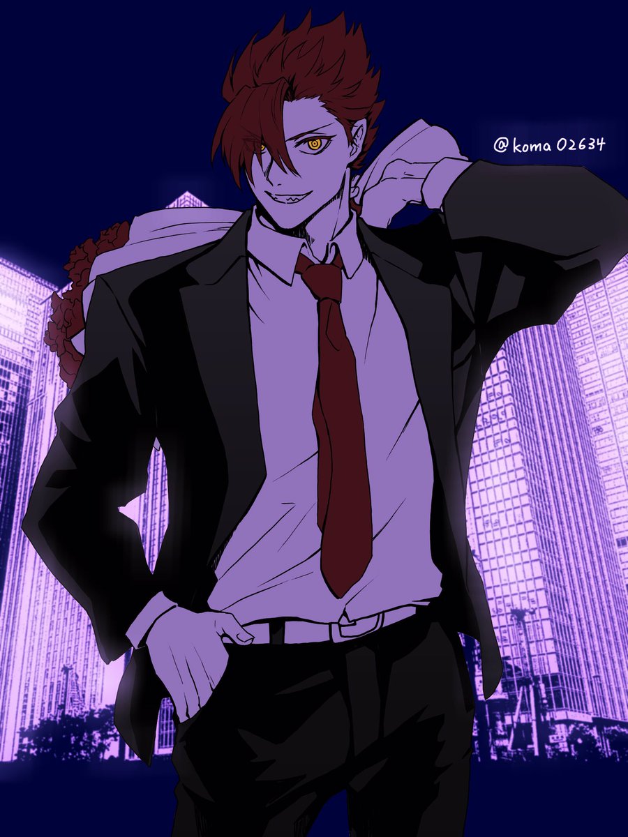 唐突に描きたくなった森くん+スーツ+花束 待ち合わせっぽくするつもりだったのにこのあと花束から武器でも取り出しそう