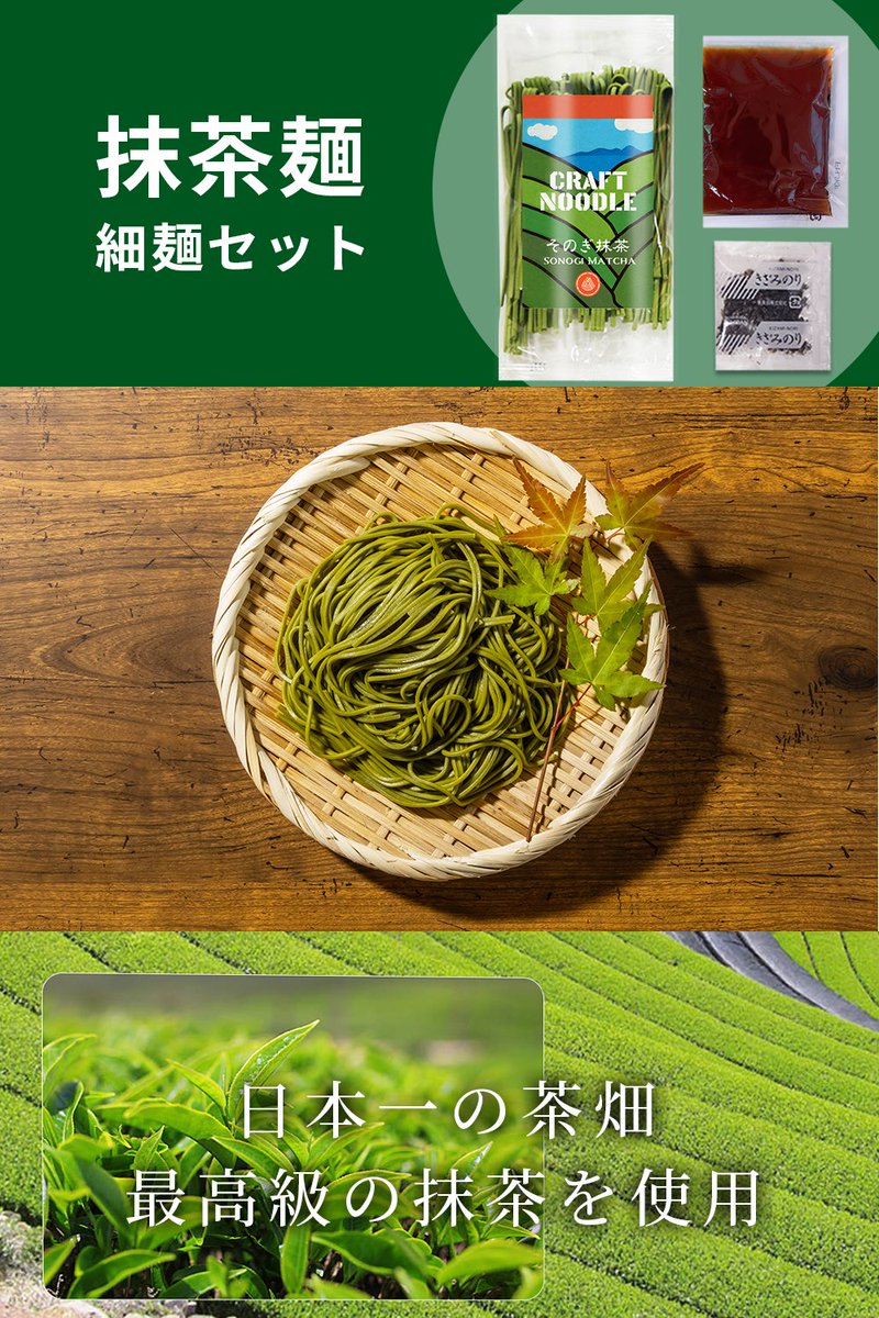抹茶麺(細麺・平打ち麺)食べ比べセットを1名様に✨
