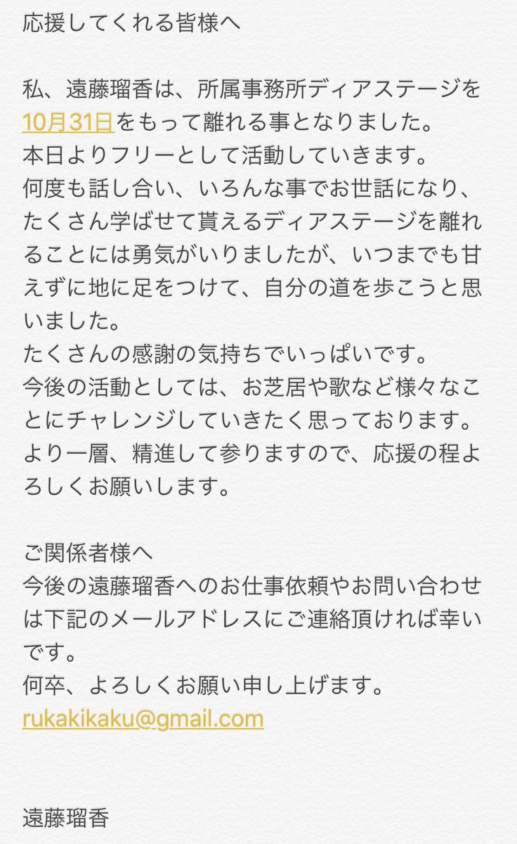 本当に本当にありがとうございました!開演が押してしまいすみませんでした。みんなの優しさとご協力のおかげで今回 #るか生誕祭 を無事に終えることが出来ました!サプライズもビックリで嬉しかったです!また明日改めてツイートします!衣装、ゲストとか話したい事沢山あるよ!