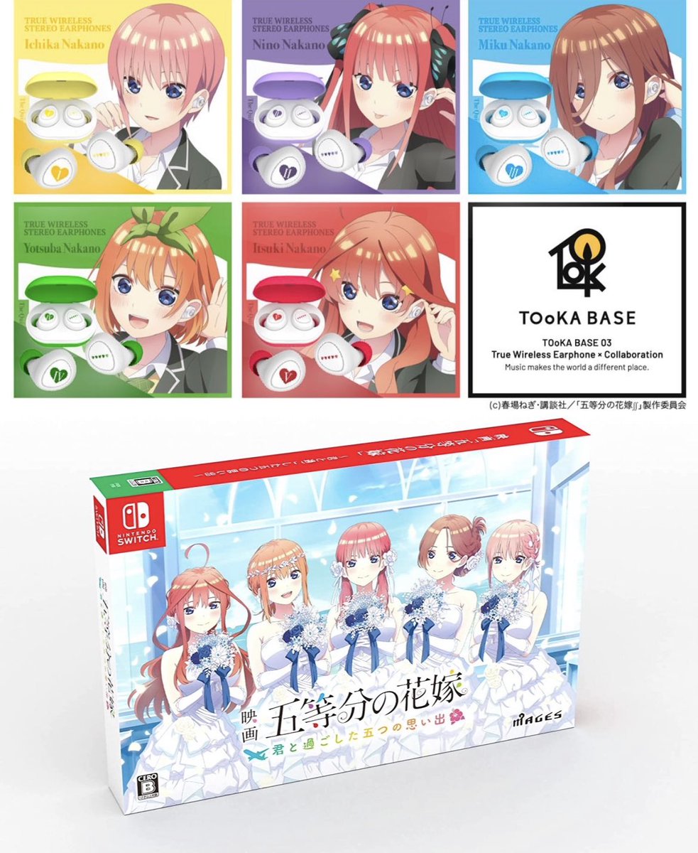 🍒ごとよめグッズプレゼント🍒 ①ワイヤレスイヤホン ②映画「五等分の花嫁」~君と過ごした五つの思い出~ 限定版  🏅参加賞 をプレゼント🌸  応募方法 🔹フォロー&リツイート 🔹絵文字リプ 応募期限 🔸4月上旬 #五等分の花嫁 #プレゼント企画