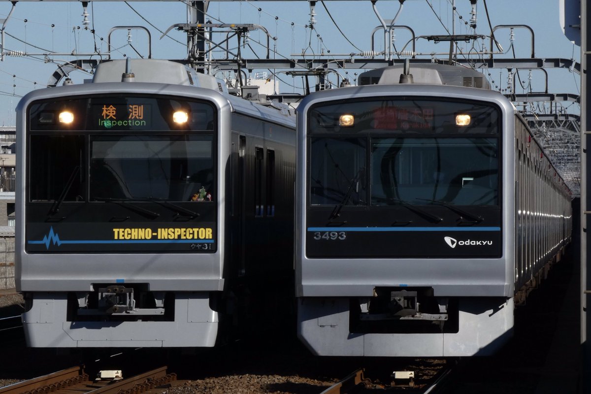 12/24 小田急クヤ31形+8000形8065F(8065×4) 小田原線検測 クリスマスイブにクヤ検が行われましたが、小田急線遅延により、急行唐木田行き(3093×10)が緩行線を走り、綺麗にクヤと並走する光景が撮れました。