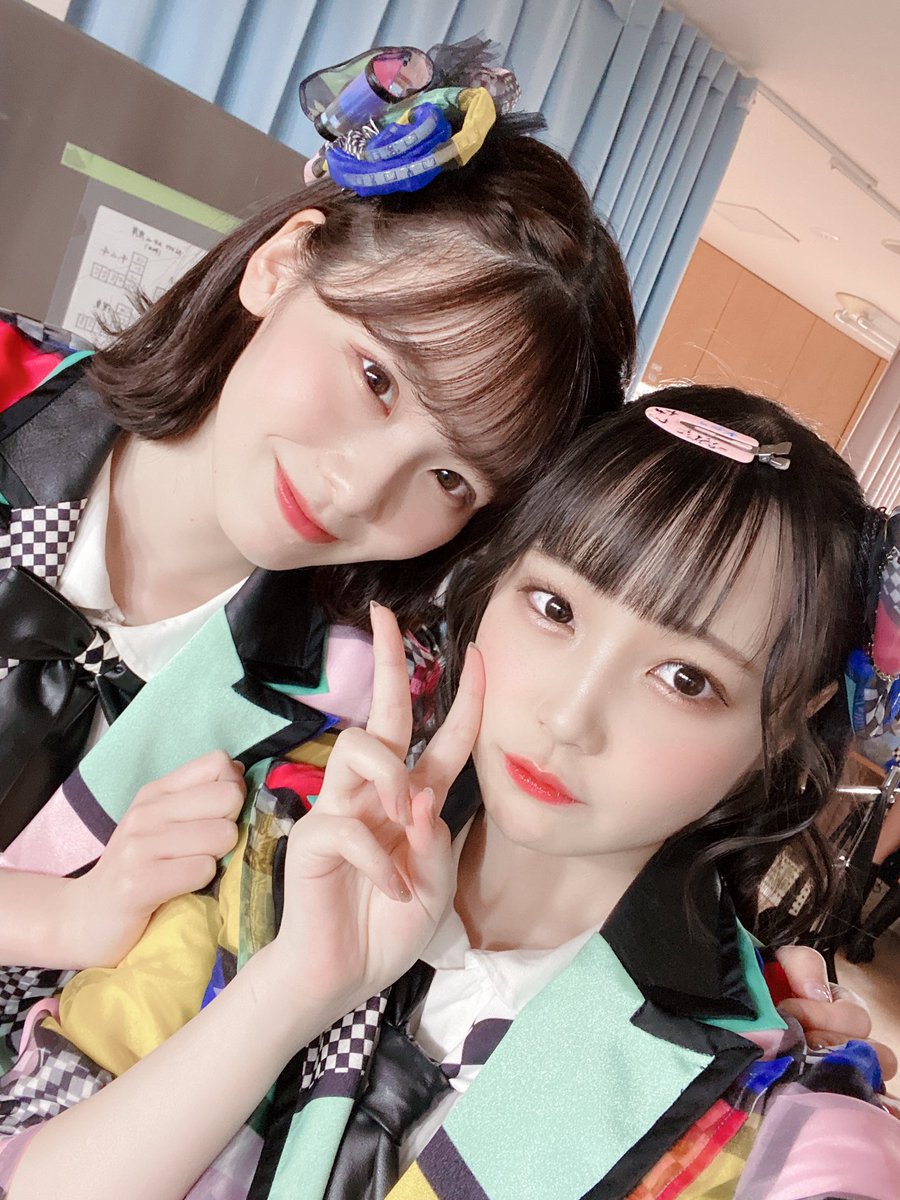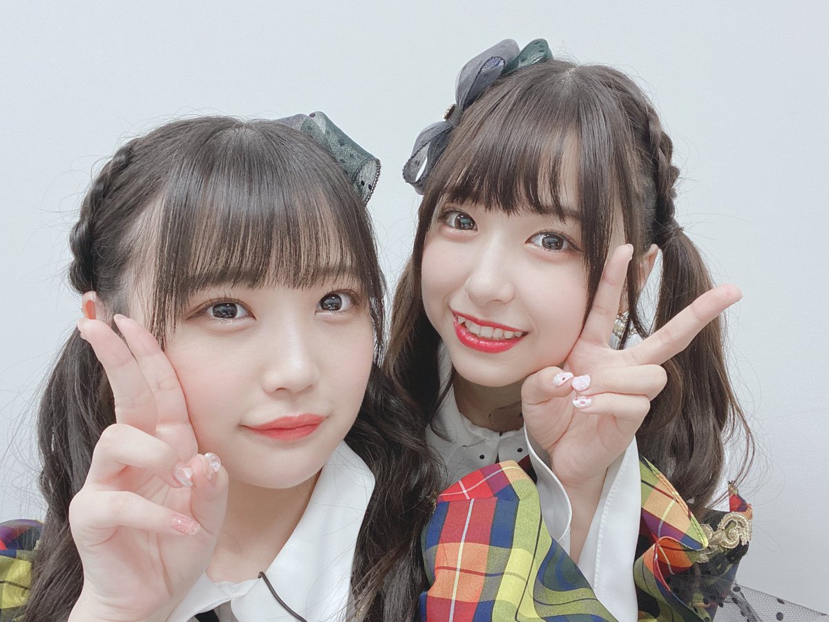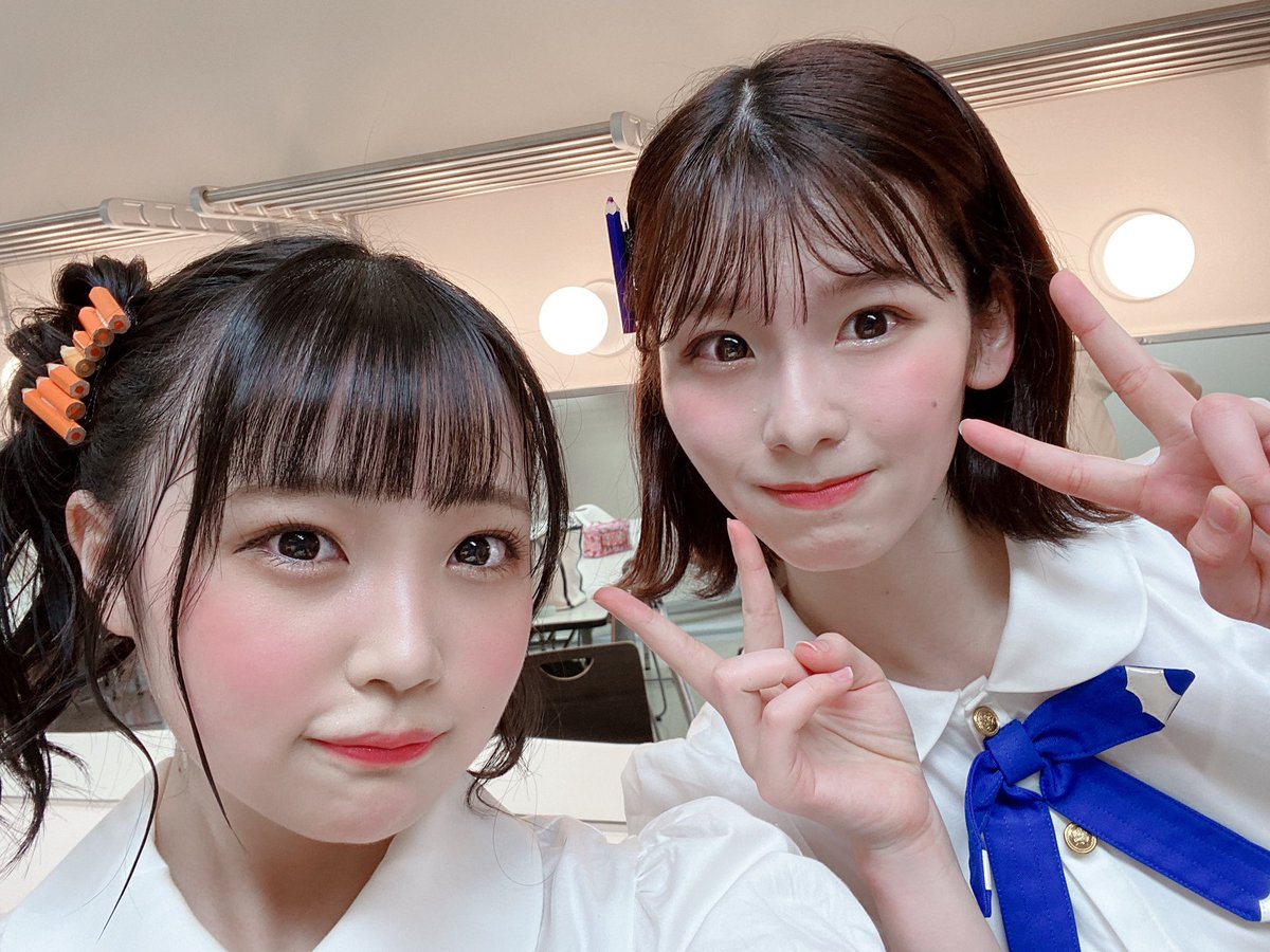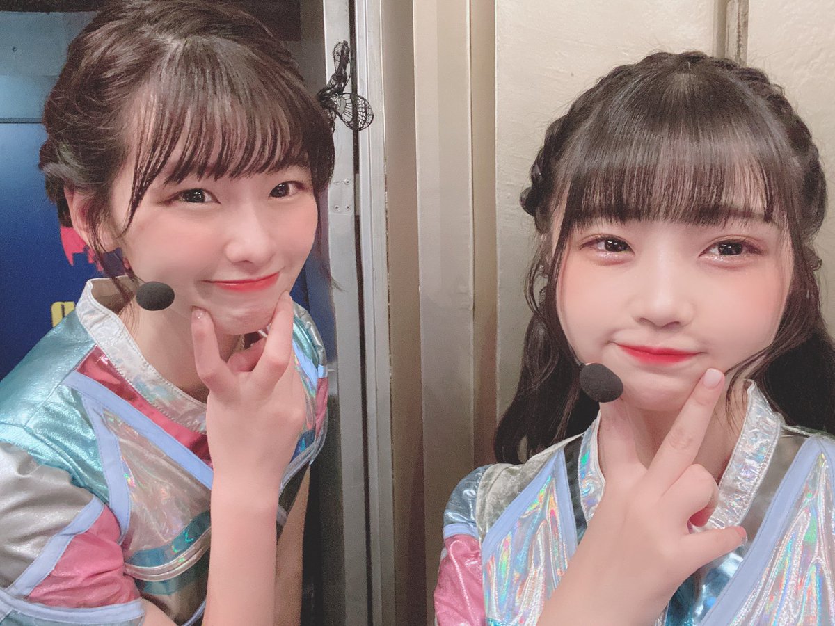 写真はオン眉ツインテールコンビの香織ちゃんと、歌割り一緒なとこが多かったまほぴょんの撮りましたよ〜♡