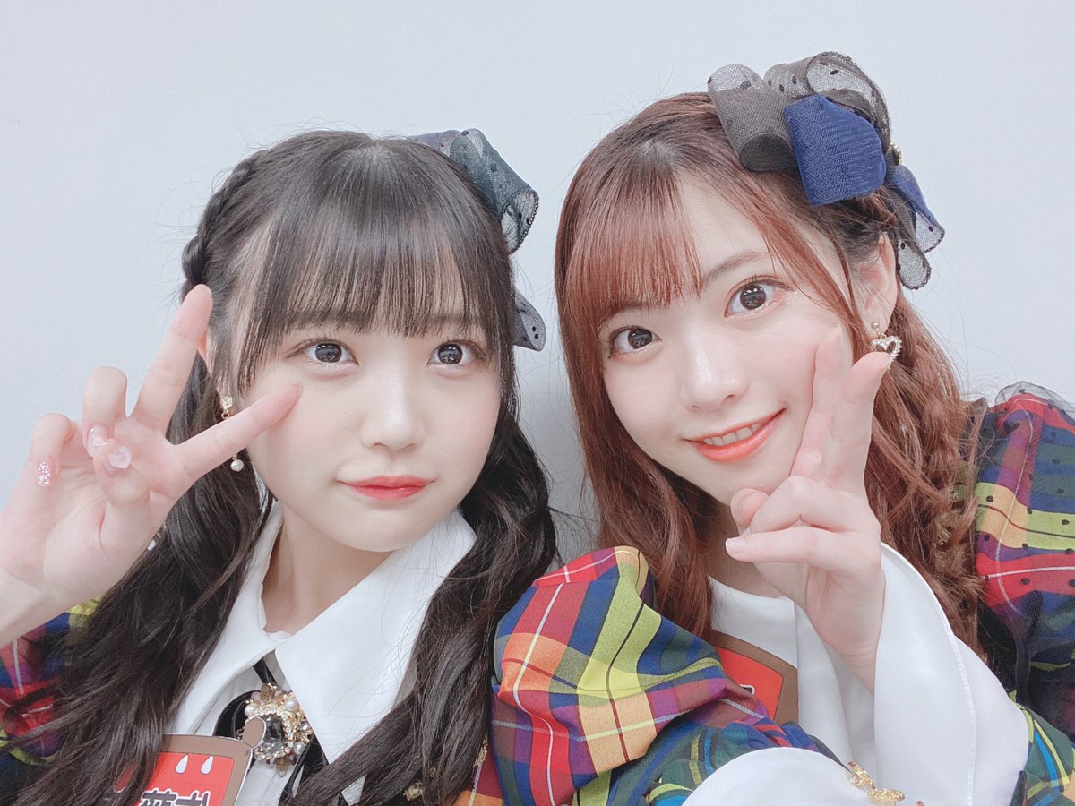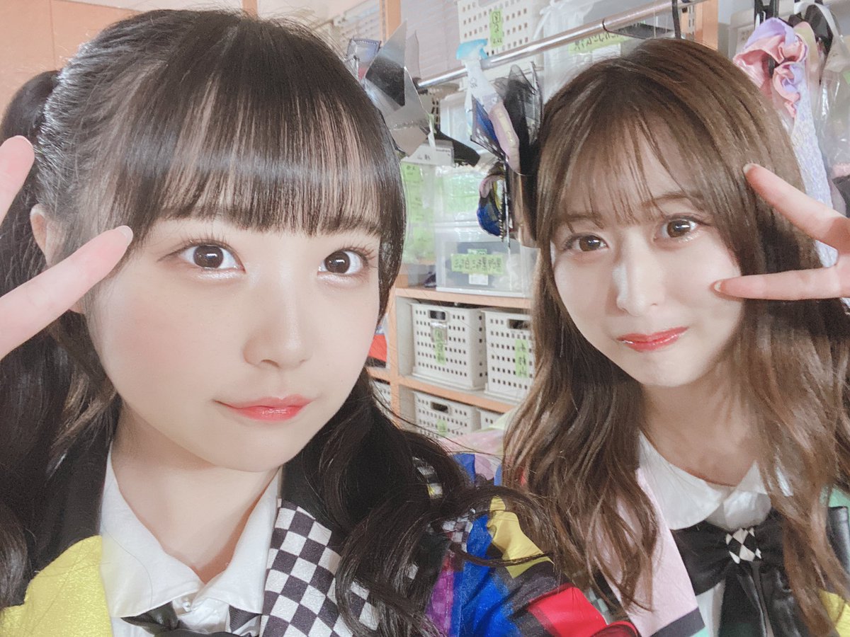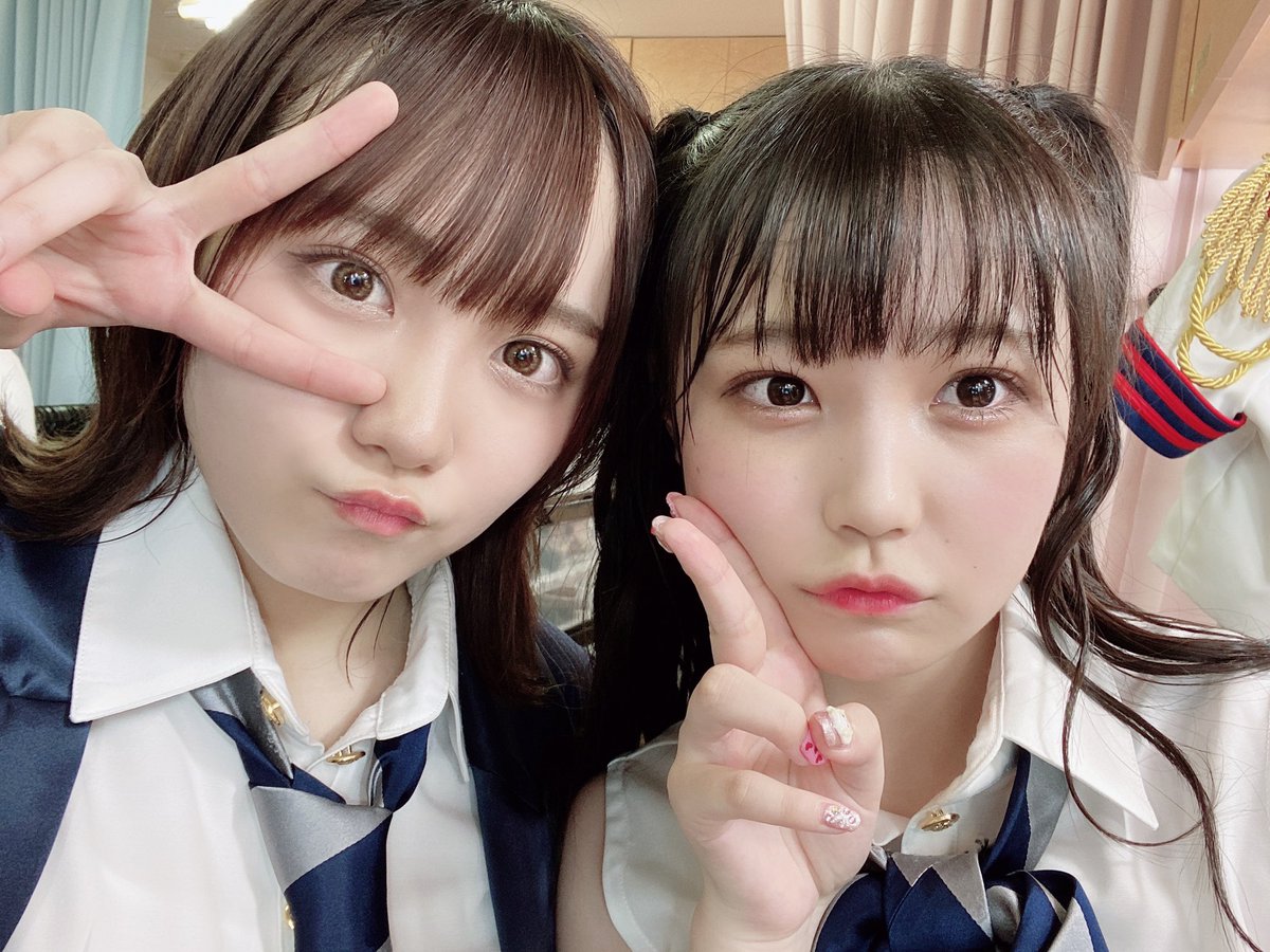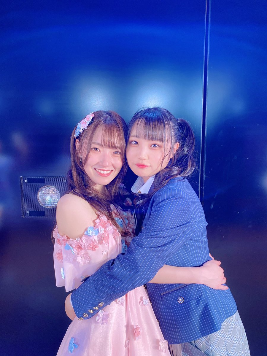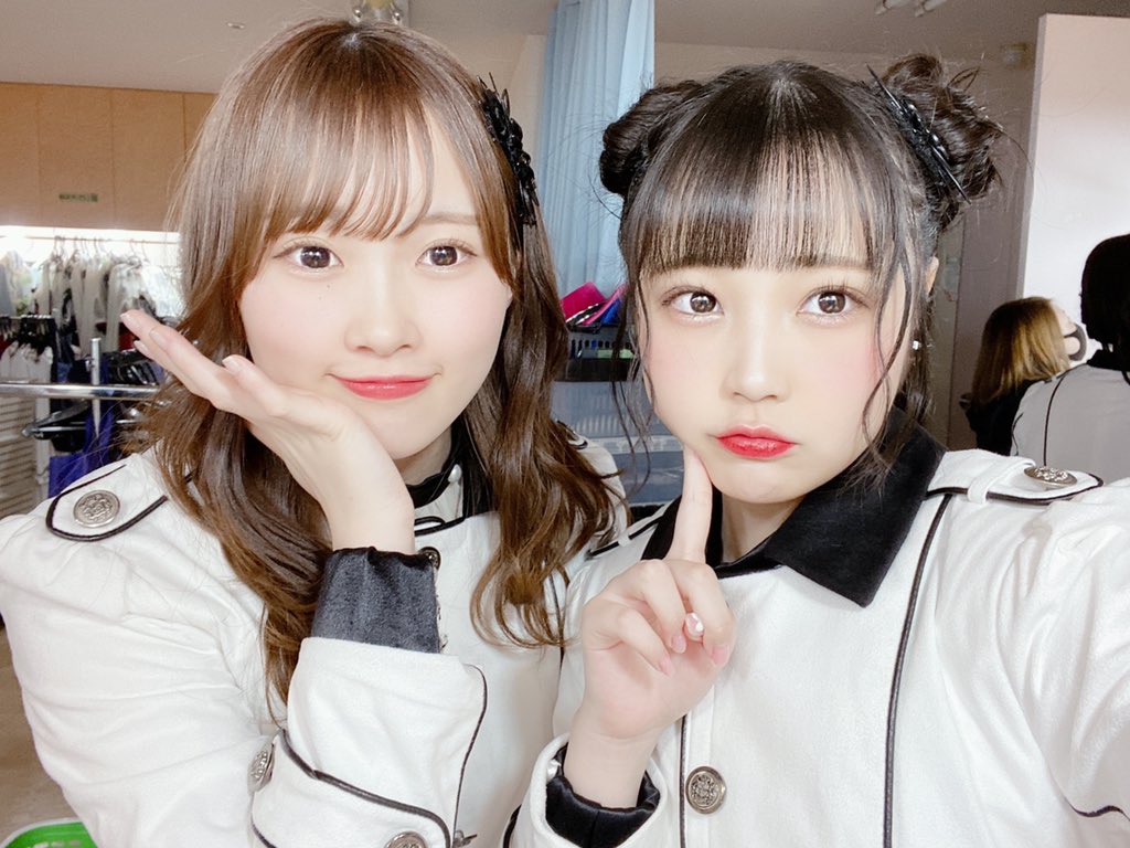写真はオン眉ツインテールコンビの香織ちゃんと、歌割り一緒なとこが多かったまほぴょんの撮りましたよ〜♡
