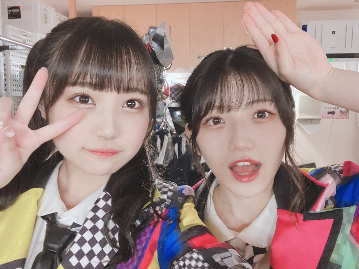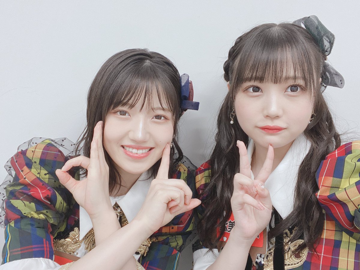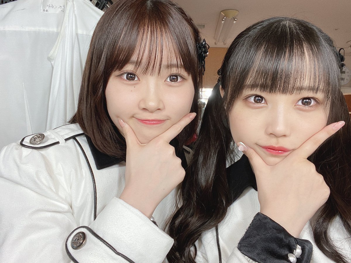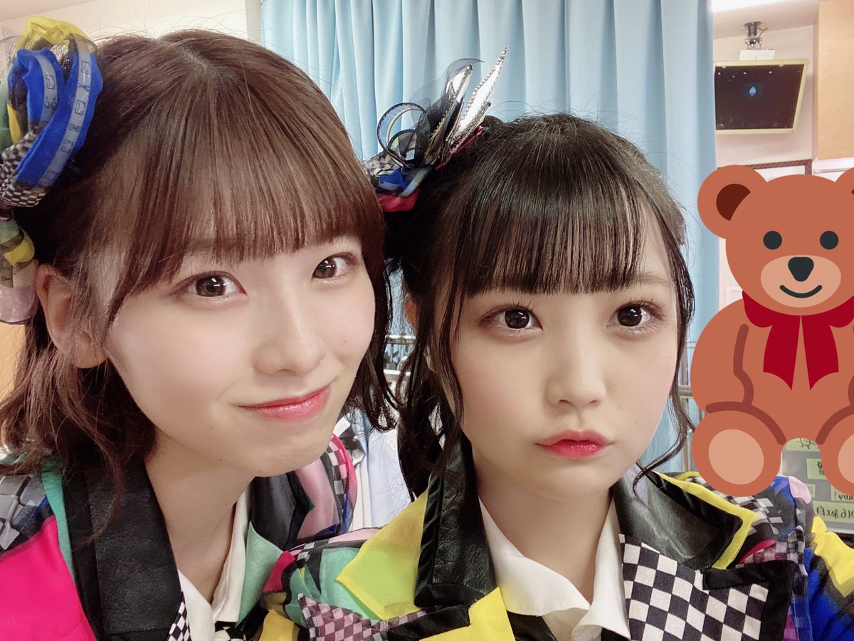 写真はオン眉ツインテールコンビの香織ちゃんと、歌割り一緒なとこが多かったまほぴょんの撮りましたよ〜♡