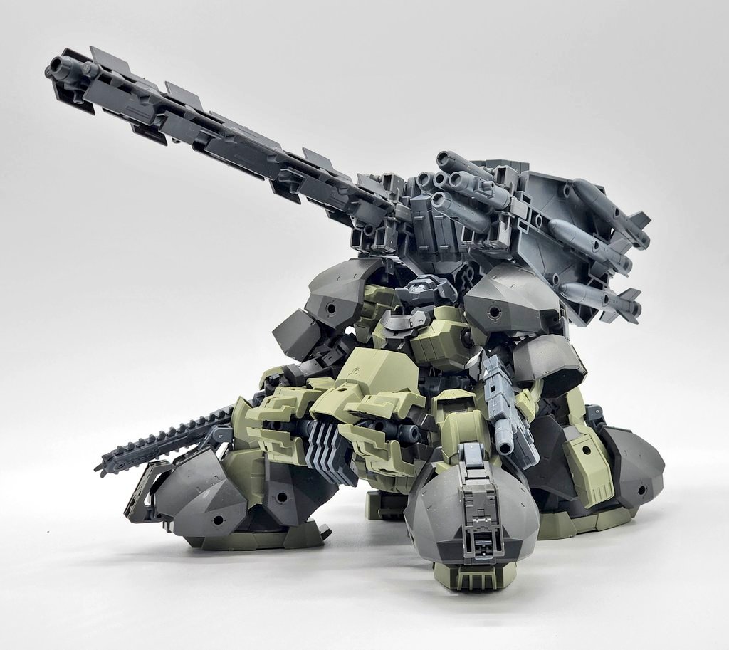 右腕の大型クローは機体は元より長大な砲身等厄介な武装を破壊するために用いられる。