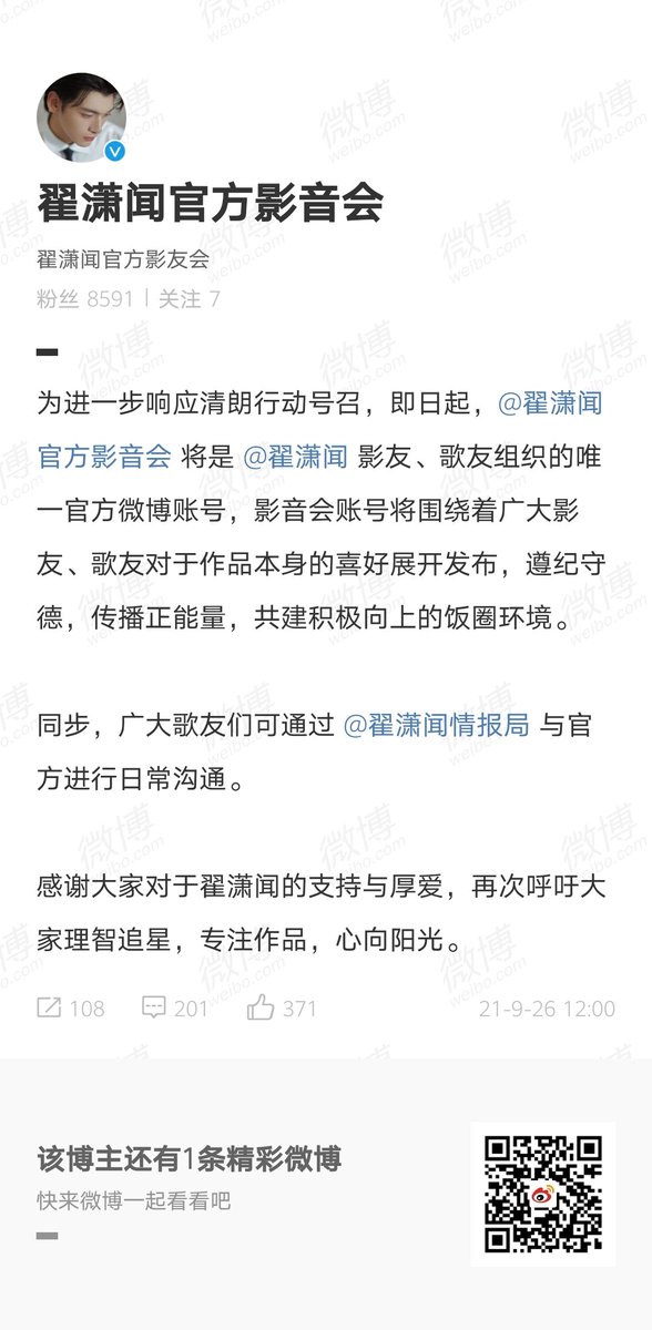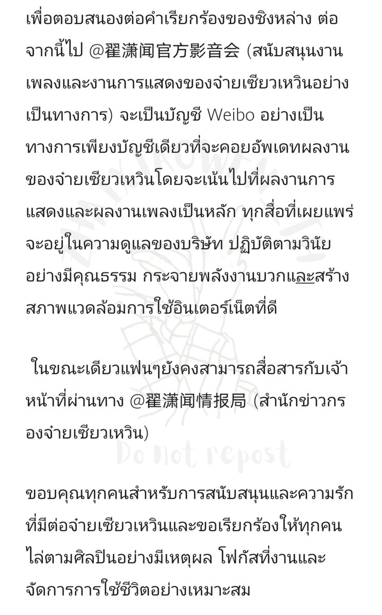 ประกาศแอคเคาท์ Weibo อย่างเป็นทางการของจ๋ายเซียวเหวินเพื่อตอบสนองต่อคำเรียกร้องของชิงหล่างค่ะ