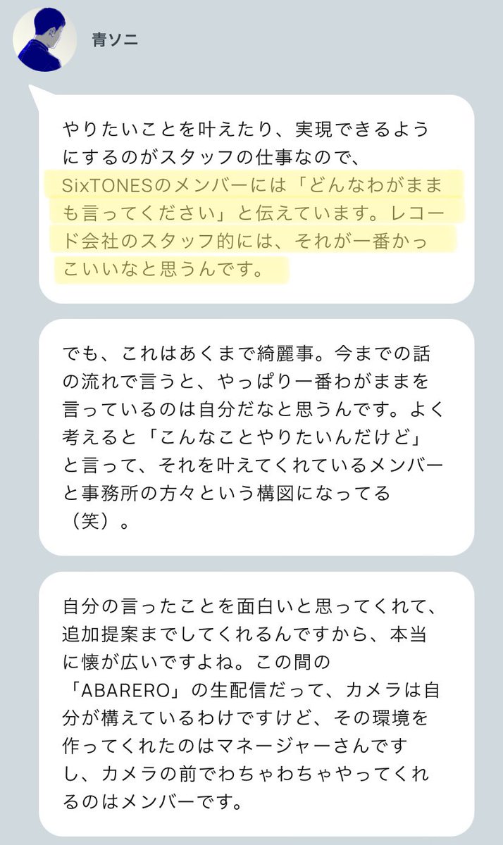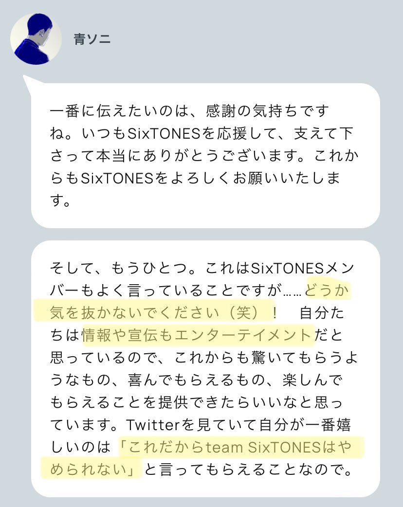 「SixTONESとteam SONY(青ソニ)からの挑戦はまだまだ続きますから」