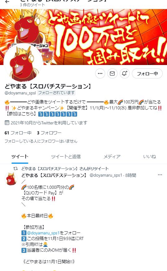 1️⃣@doyamaru_sps1をフォロー