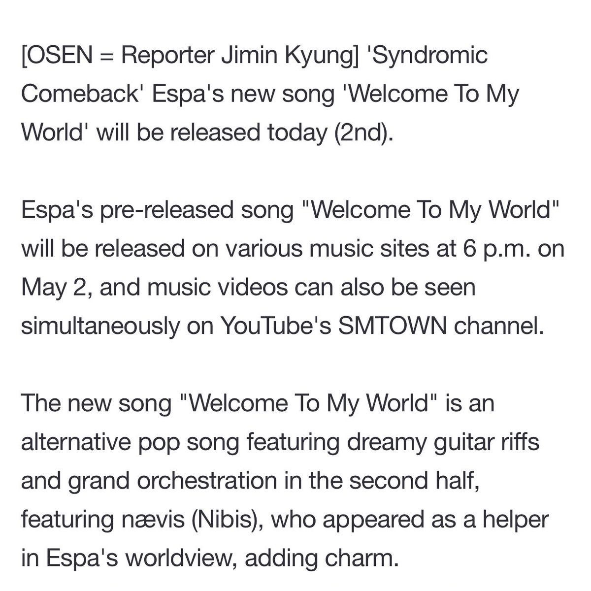 so in welcome to my world we learn that aespa and naevis meet for the first time in the real world in a forest.