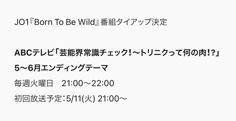JO1『Born To Be Wild』番組タイアップ決定!|JO1 OFFICIAL SITE jo1.jp/news/detail/10…