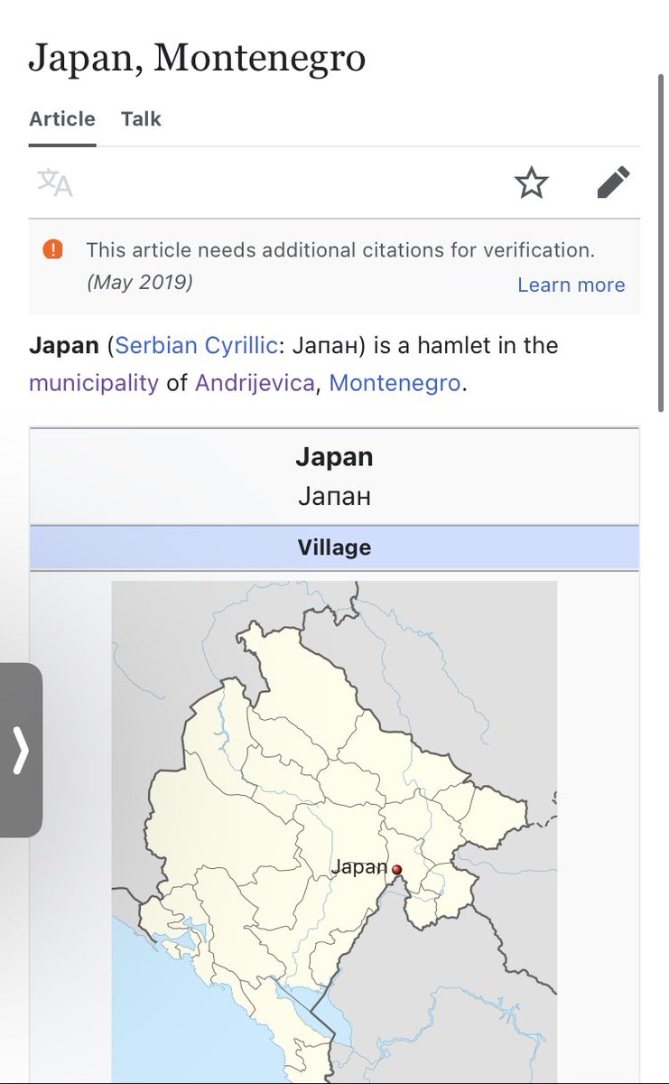 日露戦争時にモンテネグロが日本に宣戦布告した際に、遠すぎて日本には兵を派遣できないので、面目を保つために兵士が集結した場所を「日本」と名付けたという説もあるらしい(