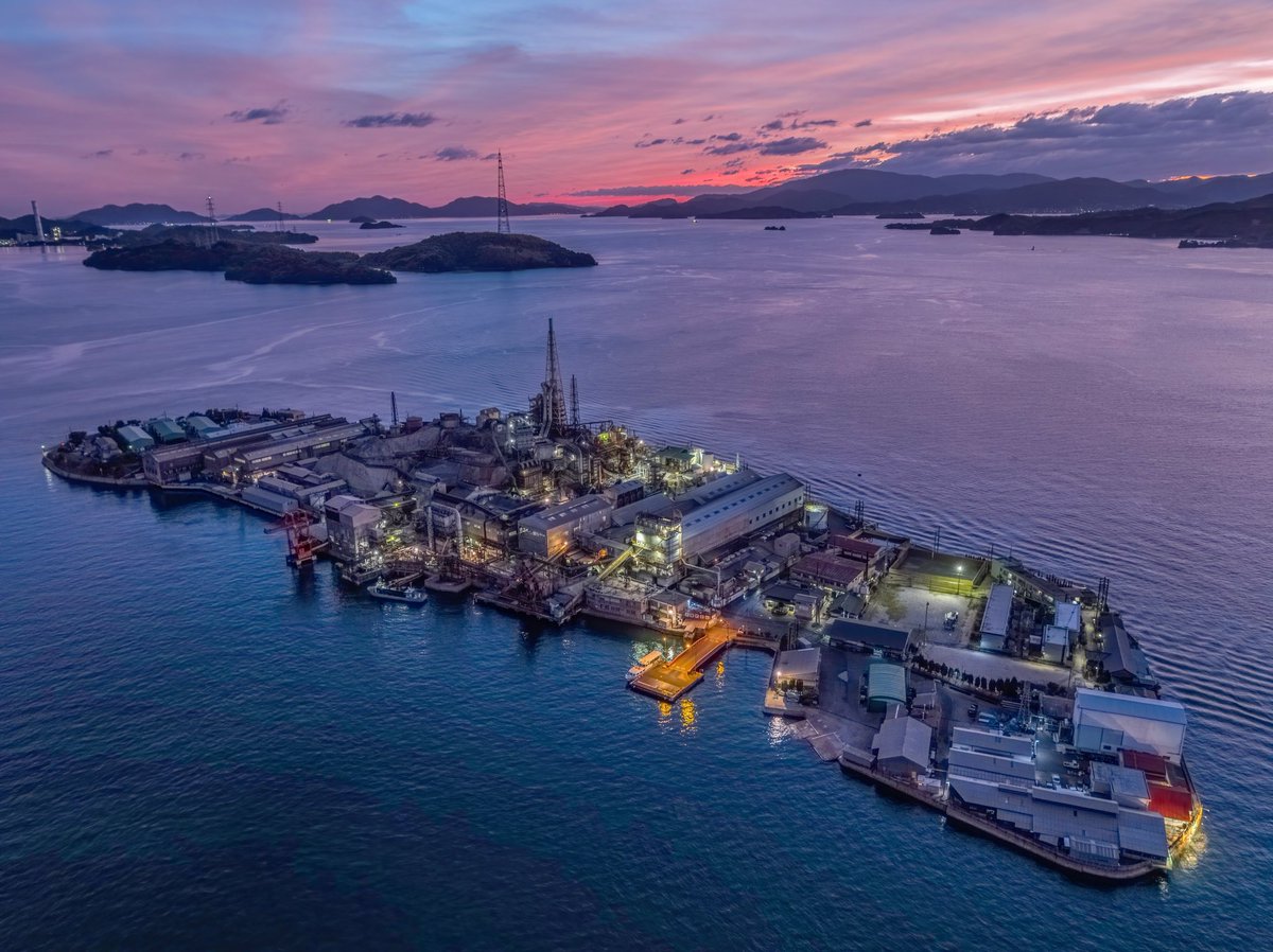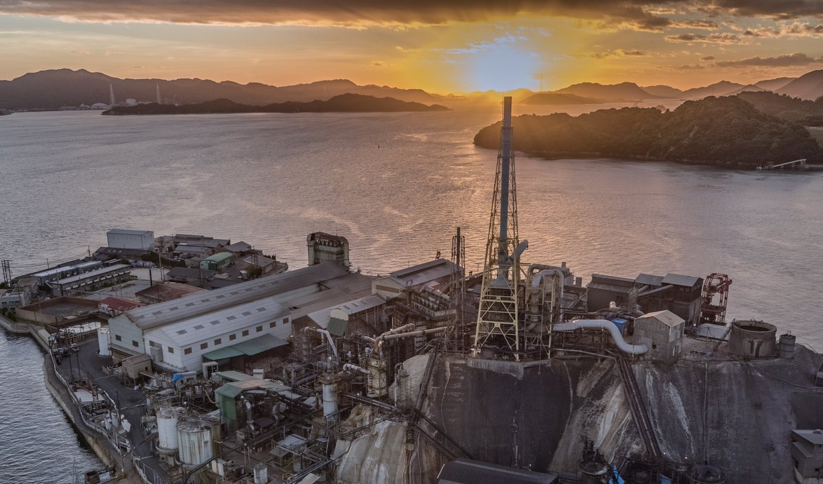 瀬戸内海にある契島は一島丸々工場の敷地で、関係者以外は立ち入り禁止。 島の真ん中あたりに高い煙突があるので、遠くから見るとまるで巨大船のようにも見える。カッコええ…