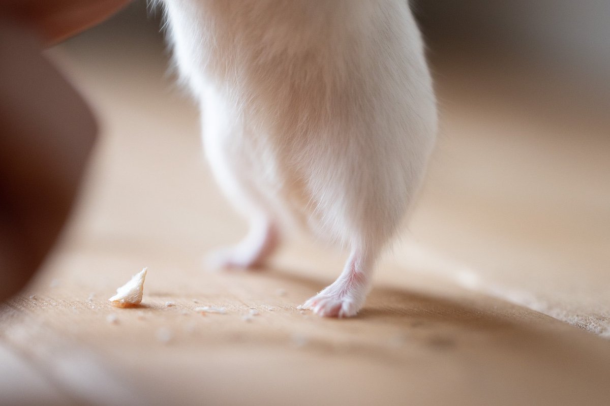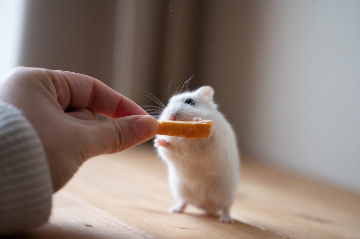 ハムスターと遊んだときにおやつをあげた。大事そうに食べる姿が愛おしい。