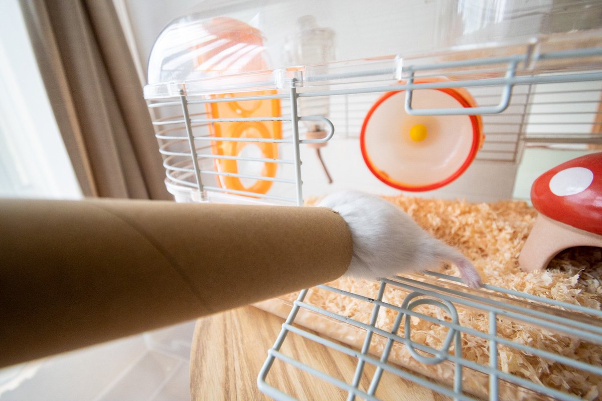 筒の中で居心地良さそうにしているハムスター。