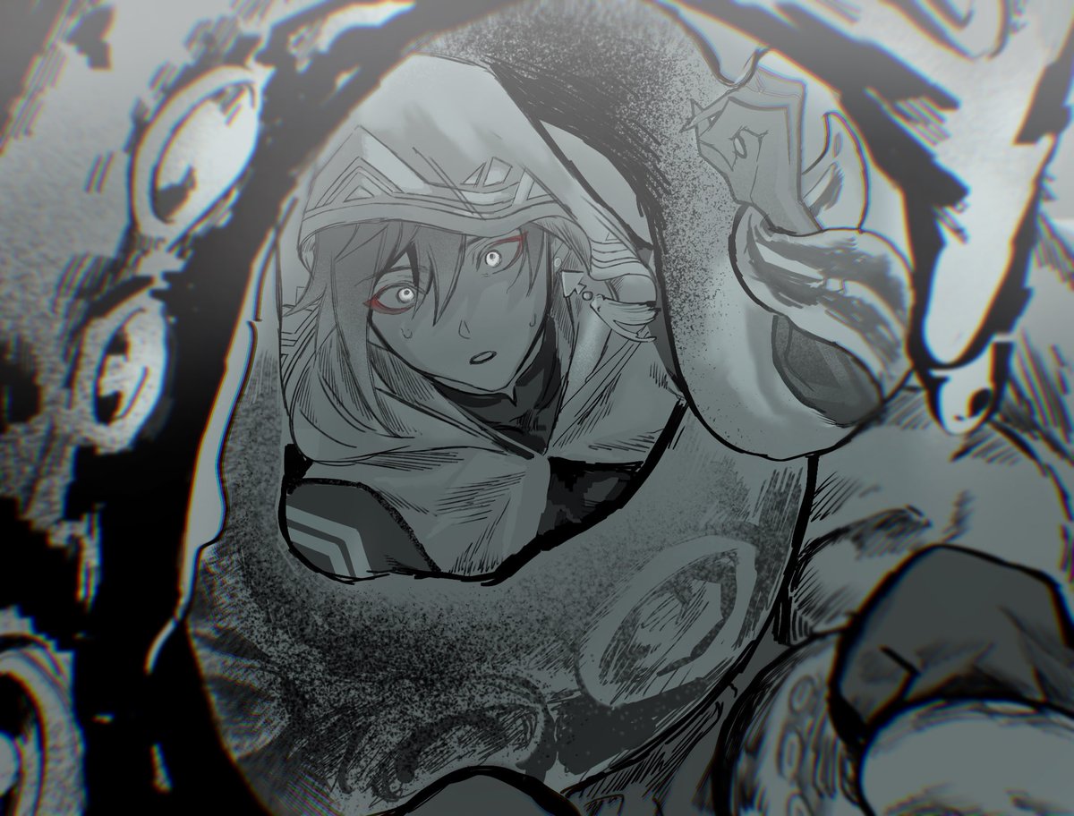岩王帝君…男性キャラの中で1番凛々しくて男前な顔してるのに触手がトラウマなの面白すぎでしょっていうらくがき