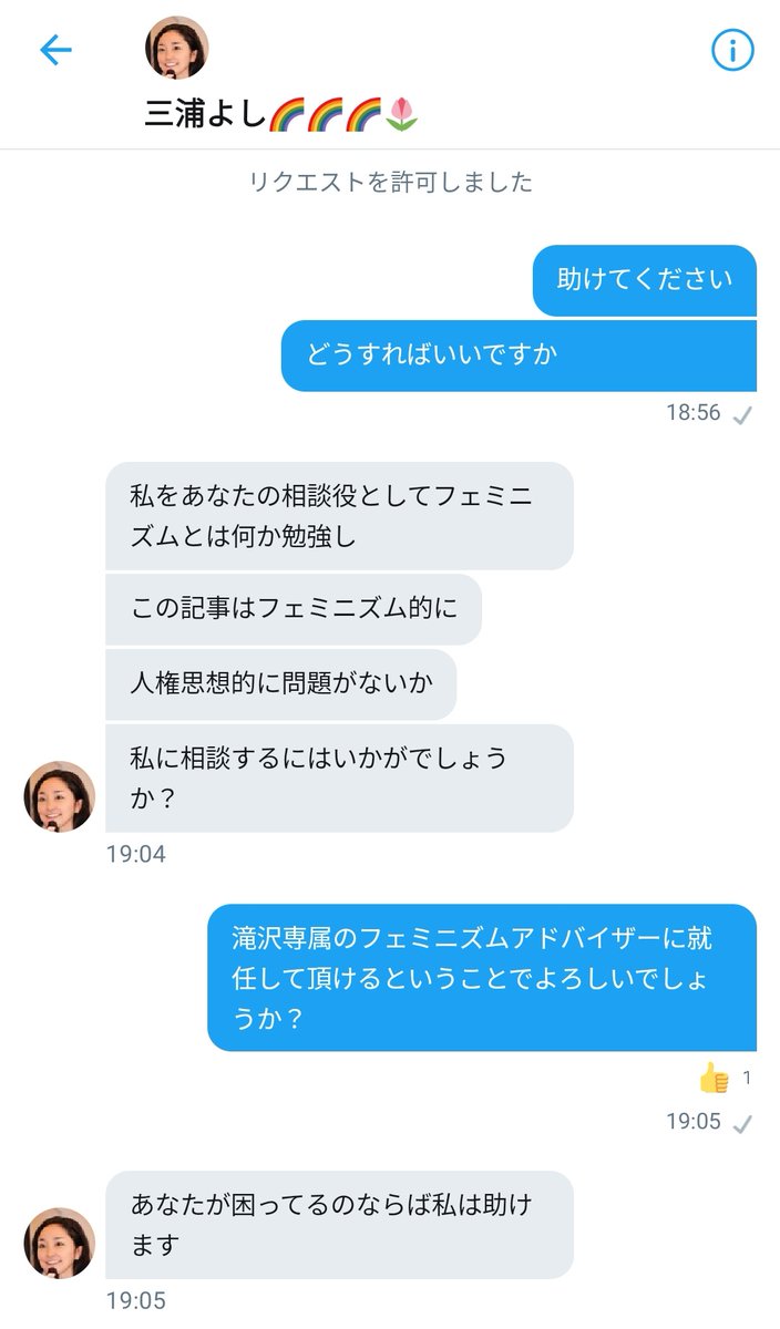 【お知らせ】今後Twitter界を代表するフェミニストになられる新進気鋭のツイフェミ「三浦よし」さんが、私滝沢ガレソの『専属フェミニズムアドバイザー』に就任されることが本日決定いたしました。今後は三浦さんのご指導のもと、フェミニズムに配慮したツイートを心がけて参ります。@4mzUdl1Ya4QxJ0N