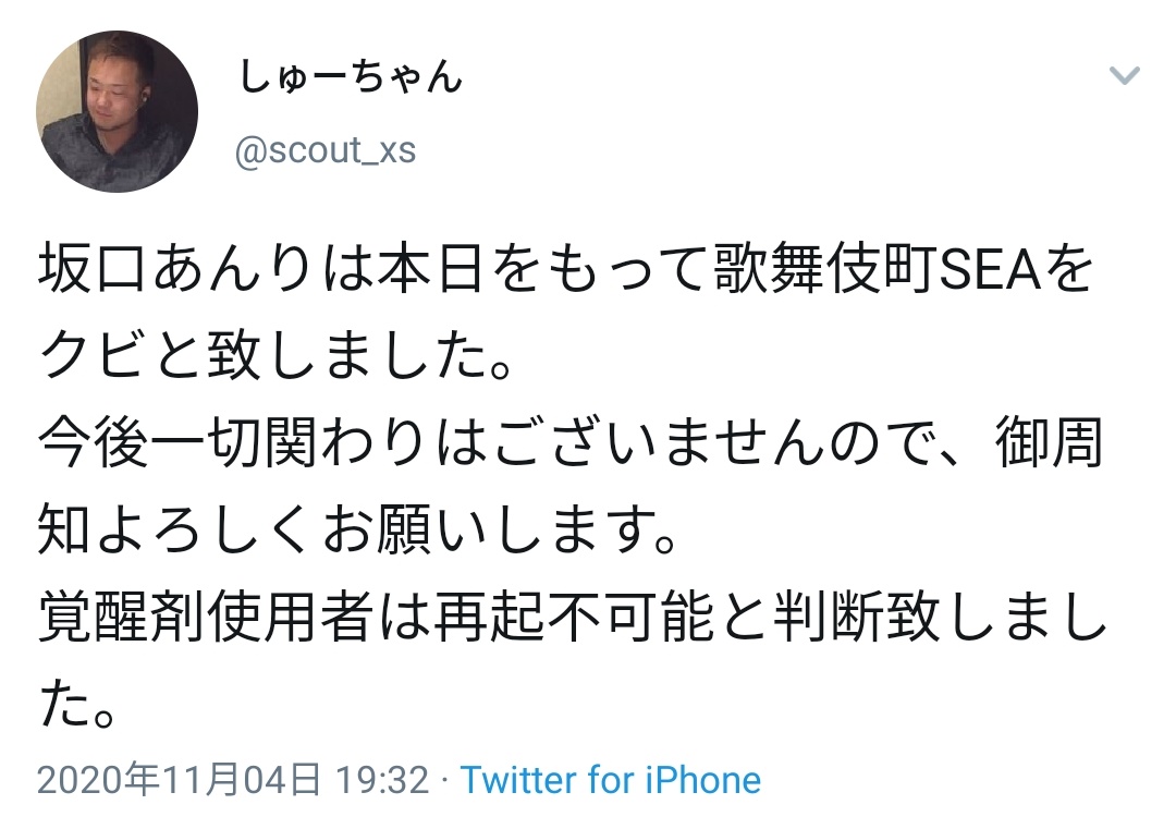 元芸能人で元AV女優でバイきんぐ小峠の元カノである「坂口杏里」さん、勤め先の歌舞伎町のバーから解雇される @anchun333