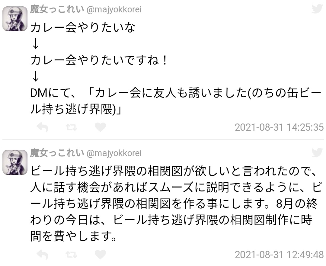 「有名(?)ツイッタラー達がカレーを食べるオフ会を開いたところ、参加メンバーが主催者の家にあった缶チューハイを持ち逃げしてめちゃくちゃモメている件をまとめろ」というDMを頂きましたが、ガチでどうでも良すぎる上に内容が小学生レベルなので取り上げません togetter.com/li/1768240