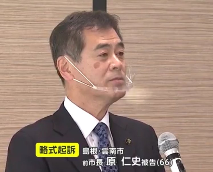 島根県雲南市の前市長 原仁史被告(66)は、入院先の病院で女性看護師へ耳たぶを噛みちぎる等の暴行を加え略式起訴された。検察は略式起訴とした理由について「現時点で答える内容はない」とした。
