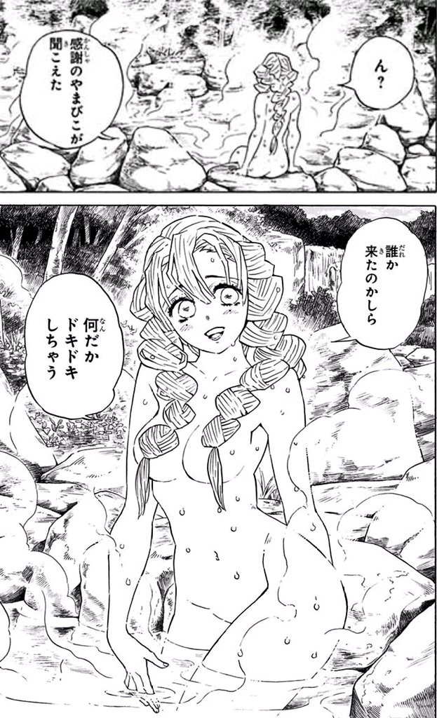 原作マンガで2ページだけ出てくる恋柱・甘露寺蜜璃の入浴シーンに早くも「女性蔑視なのでアニメではカットしてほしい」という意見が一部で上がり話題に
