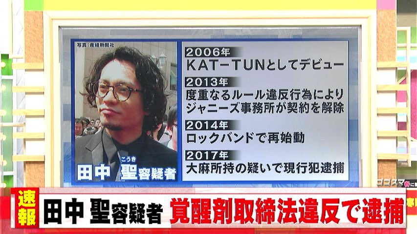 ・元KAT-TUN田中聖 覚醒剤で逮捕