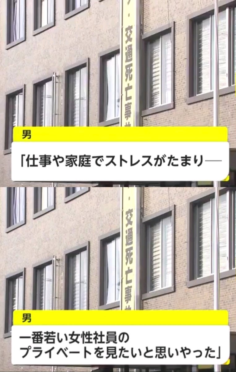 テレワーク用の貸出ノートパソコンに自動で動画を撮影するソフトを無断インストールし、女性社員の映像を録画。「ストレス解消のため若い女性社員のプライベートを覗きたかった」と認めた。