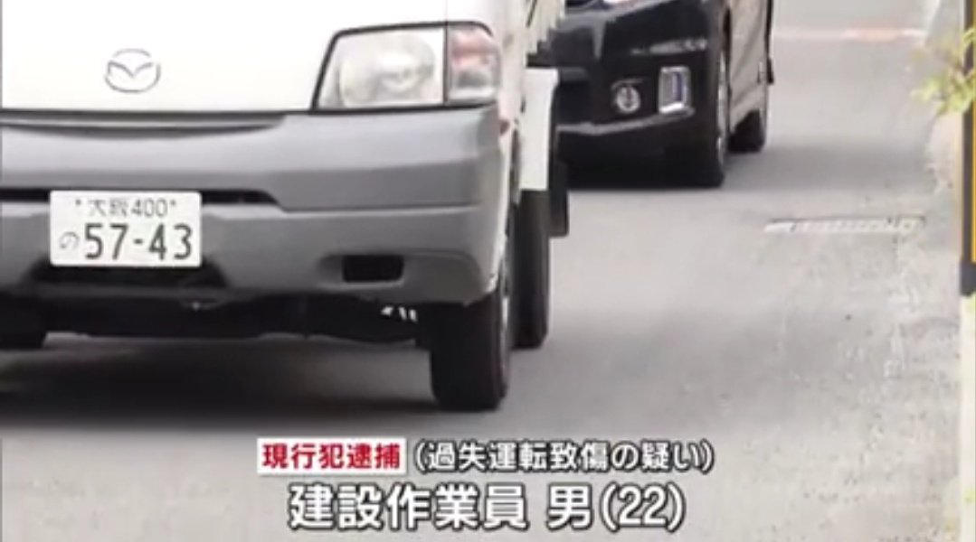 母親は当時3歳児を前に、5歳の長男を後ろに乗せていたが、ベルトもヘルメットもしていなかった。大阪府警はトラックを運転していた22歳の建設作業員を過失運転致傷の疑いで逮捕した。