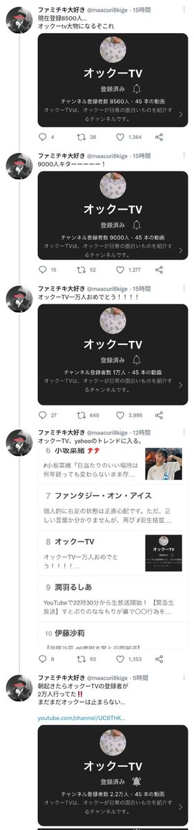 オックーTVをチャンネル登録する人続出