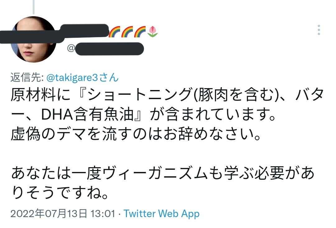 【謝罪】本日投稿した「Amazonプライムデーでたべっ子どうぶつビスケットが最安値に!動物を食べれないヴィーガンでも安心!」というツイートですが、ヴィーガンの方からこのツイートが虚偽に当たるというご指摘をいただきました。