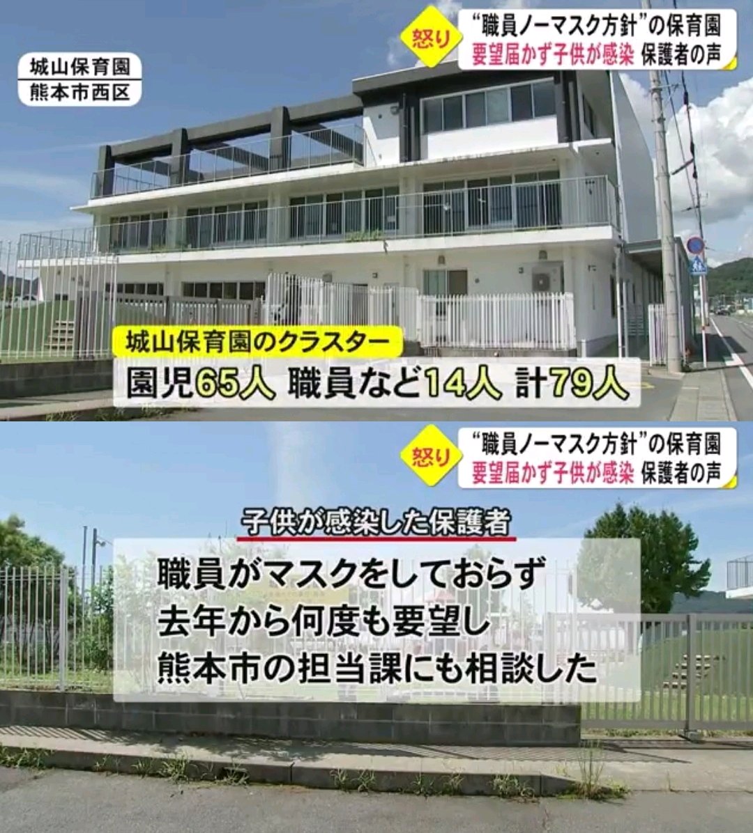 "職員がマスクをしない方針"の保育園さん、保護者からの再三の要望や市からの指導を無視してノーマスクを貫き無事79人感染の大クラスターを引き起こす @熊本市西区 城山保育園
