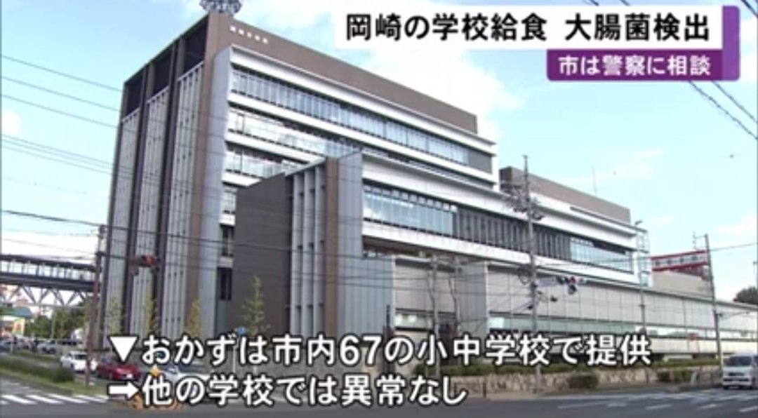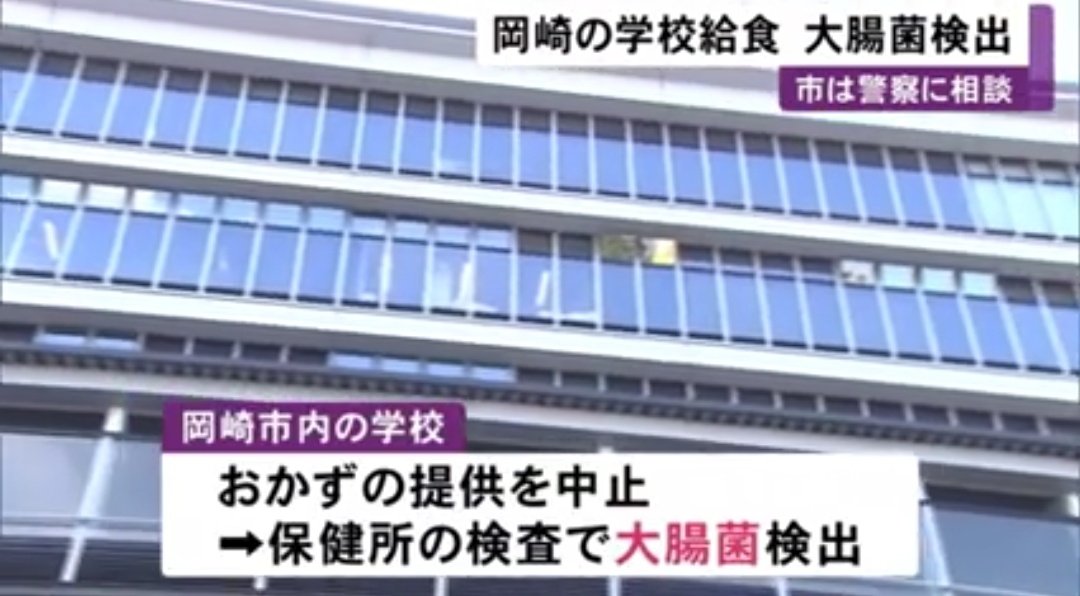 校長先生、給食の事前確認で異常感じ提供中止 その後給食から『大腸菌』検出 @愛知岡崎