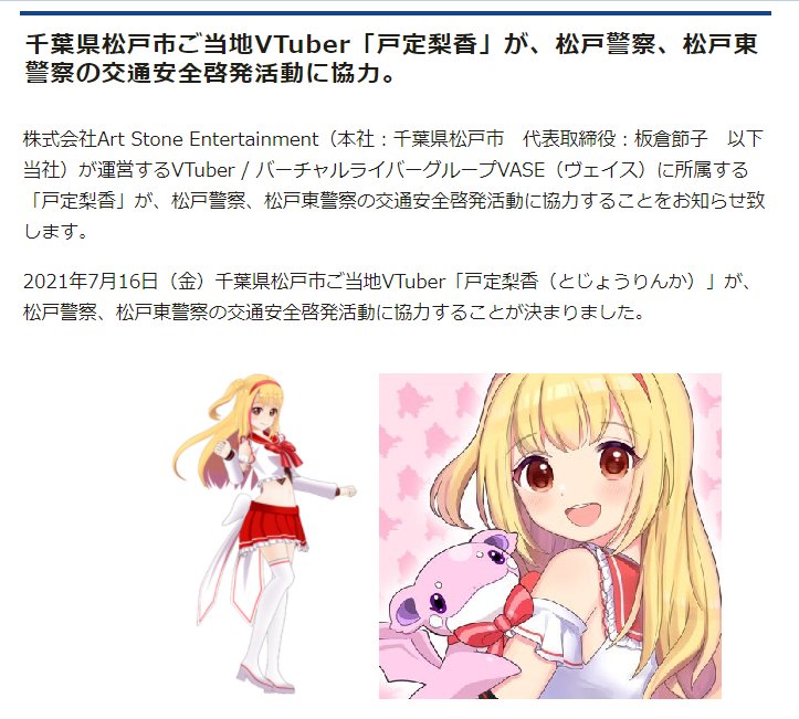 千葉県松戸市のご当地Vtuber 戸定梨香(とじょうりんか)さん、地道なVtuber活動の末、地元松戸警察からの依頼で自転車の交通安全ルールPR動画に出演