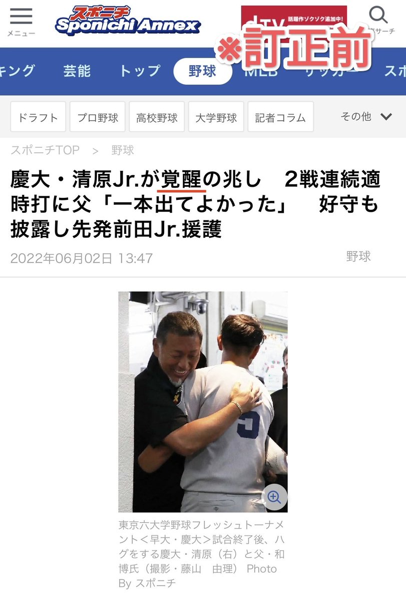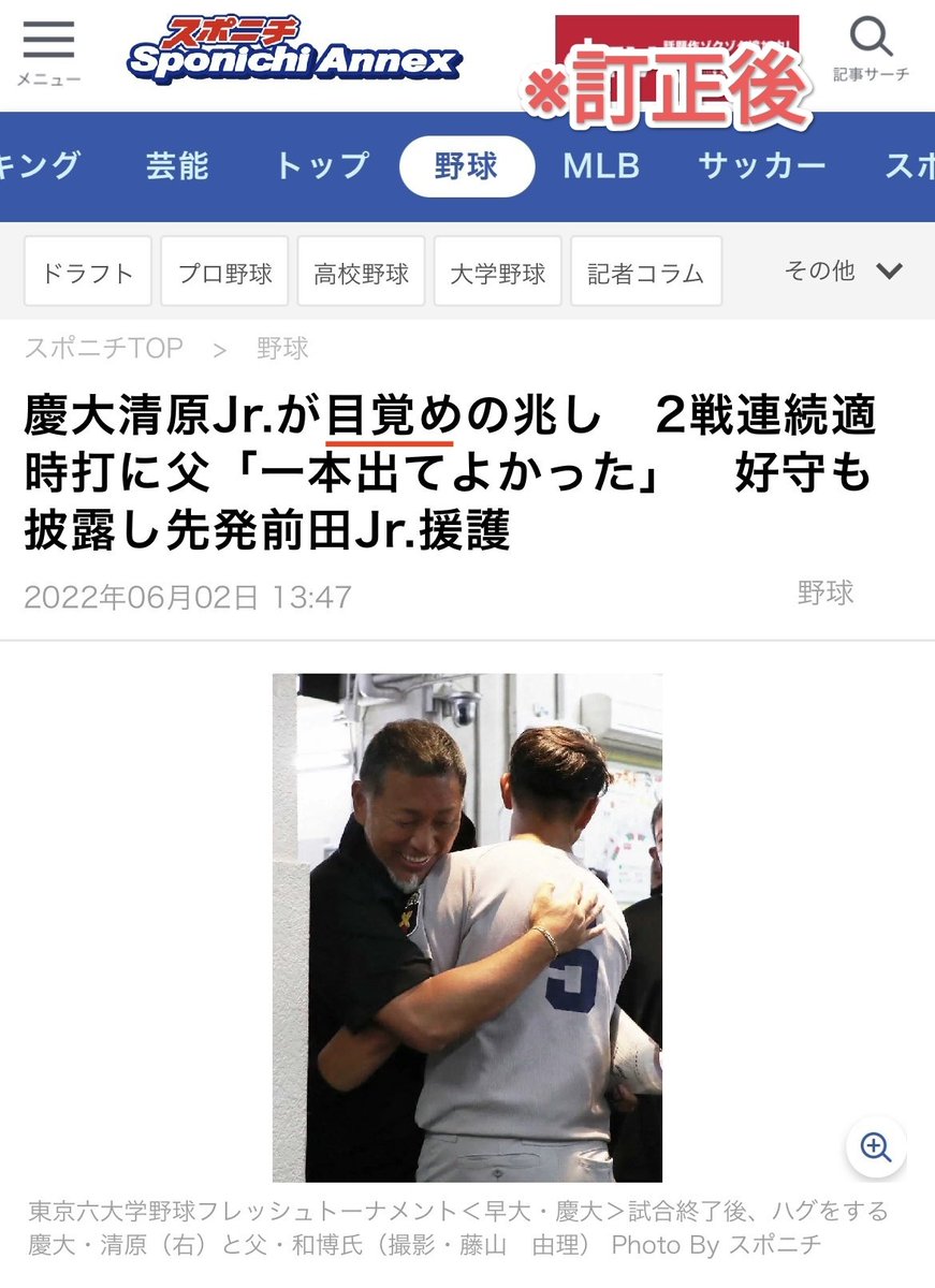 【悲報】スポニチさん、大人の事情で清原親子の記事タイトルを急遽変更する