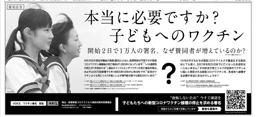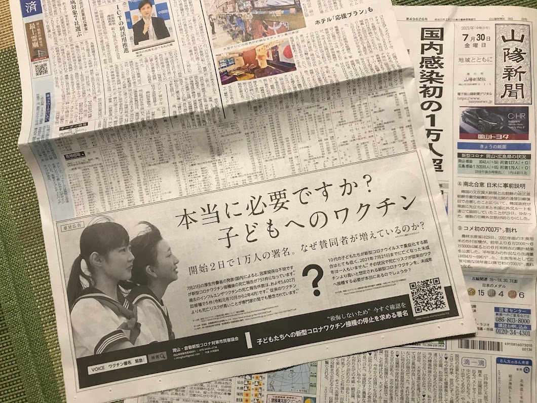 読売新聞さん、子どものコロナワクチン摂取に異を唱える意見広告を掲載してしまう