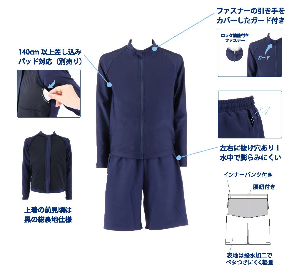 男女共に身体的な違いが表れやすい胸、腰、尻などはゆったりしたシルエットになるよう素材を変え、体型の違いが目立たないデザイン。本年度は3校が導入予定で、来年に向けて10校が検討中。