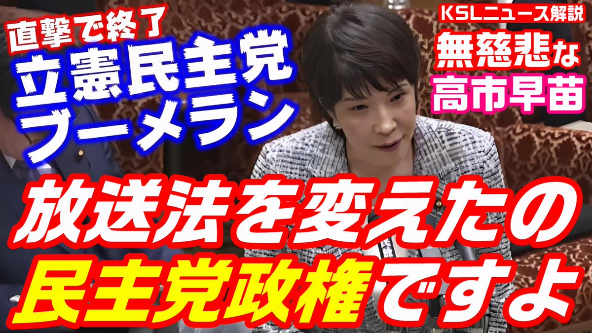 大ブーメラン!高市早苗大臣「放送法を厳しい方向に変更したのは民主党政権、業務停止命令を加えた」文書問題を蒸し返した立憲が撃沈