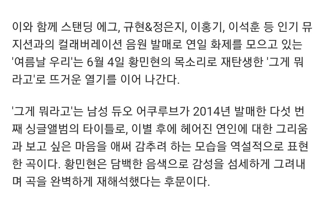황민현, 허광한 '여름날 우리' 컬래버 합류…'그게 뭐라고' 재탄생