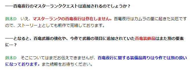 マスターランクの百竜夜行はなし