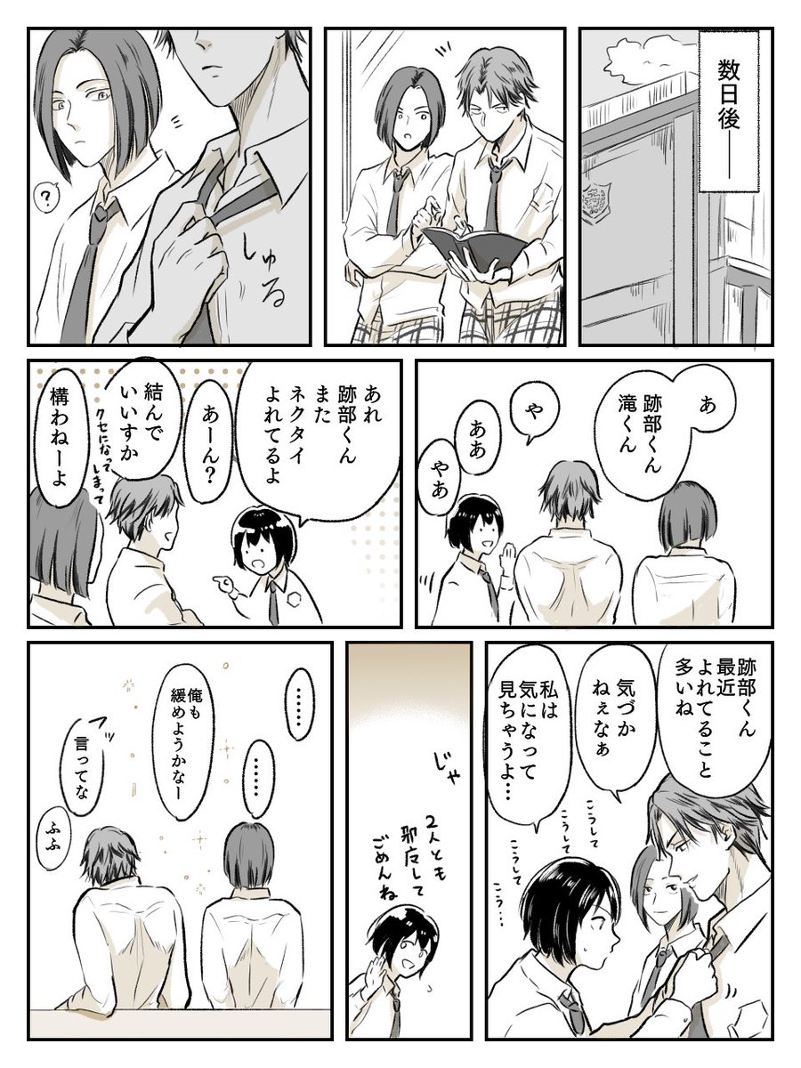 ⚠️顔有り夢漫画注意⚠️ 対面でネクタイを結べなかった夢主がアトベさんとの特訓?により結べるようになった後の話です。