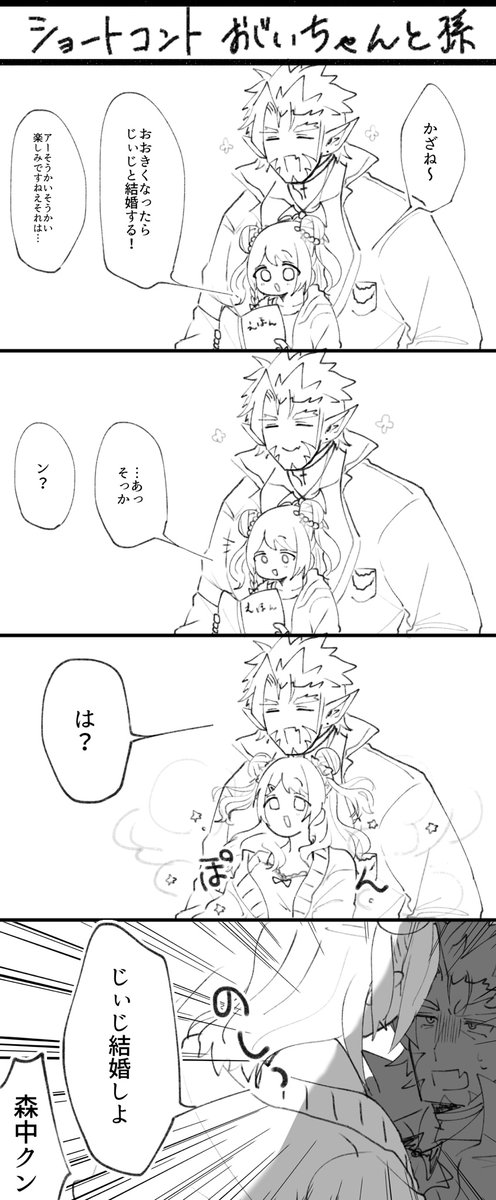 これはなんか描いてたギル様と森中花咲さんの謎四コマです