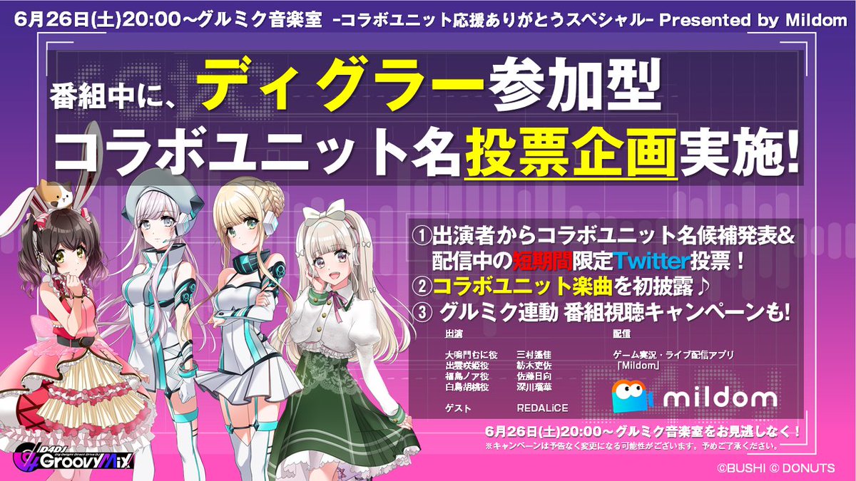 ①コラボユニット名投票を【Twitter @D4DJ_gm 】で実施💖