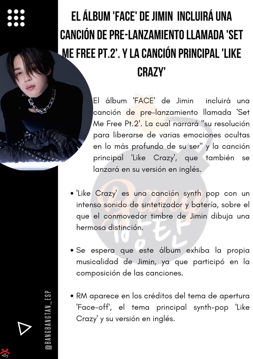 Según un comunicado de prensa de Bighit, FACE profundizará en la historia de #JIMIN al enfrentarse a su verdadero yo y dar un nuevo salto como artista. (+)