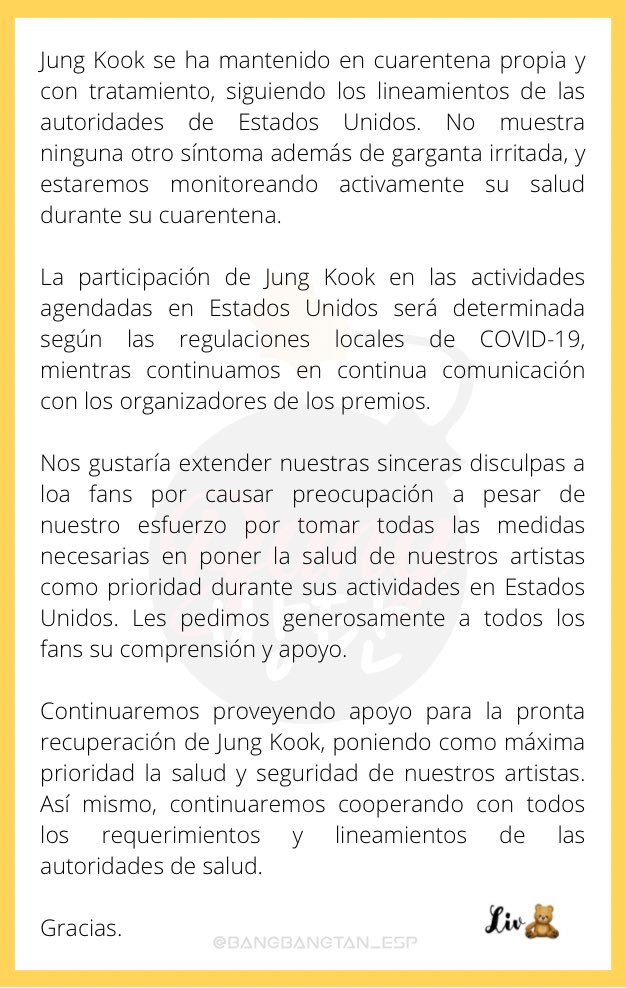 ~Ya no quiero leer más comunicados de estos 😭 ojalá nuestro maknae de oro se recupere pronto 🥺❤️