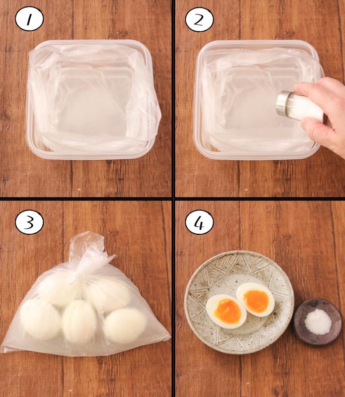 「コンビニの塩たまご」好きさんに捧げたい…! 【塩とうま味調味料でじわるおいしさの塩味玉】作れます グルタミン酸のうま味でおいしさ格上げします 卵は半熟が最高… 水200ml、塩6g、うま味調味料6ふり、殻むいた茹で卵5個混ぜ冷蔵庫に一晩(8時間)。