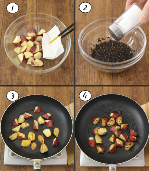 大学芋作る時にこれぜひ試してほしいのですが、、うま味調味料絡めると芋の甘みが増してめちゃ旨になります。 さつま芋1本切り水にさらし水気切り3分チン。油大さじ3で焼きキッチンペーパーで余分な油ふき、砂糖・味醂各大さじ1、酢・黒ごま各小さじ1、醤油小さじ2/3、うま味調味料3ふり煮絡める。